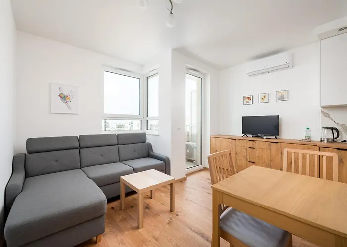 The 30 m² Metro Natolin 10Th Floor Apartment By Bookinghost Warsaw provides swift access to various city landmarks, such as Galeria Ursynow, located just a 5-minute walk away.